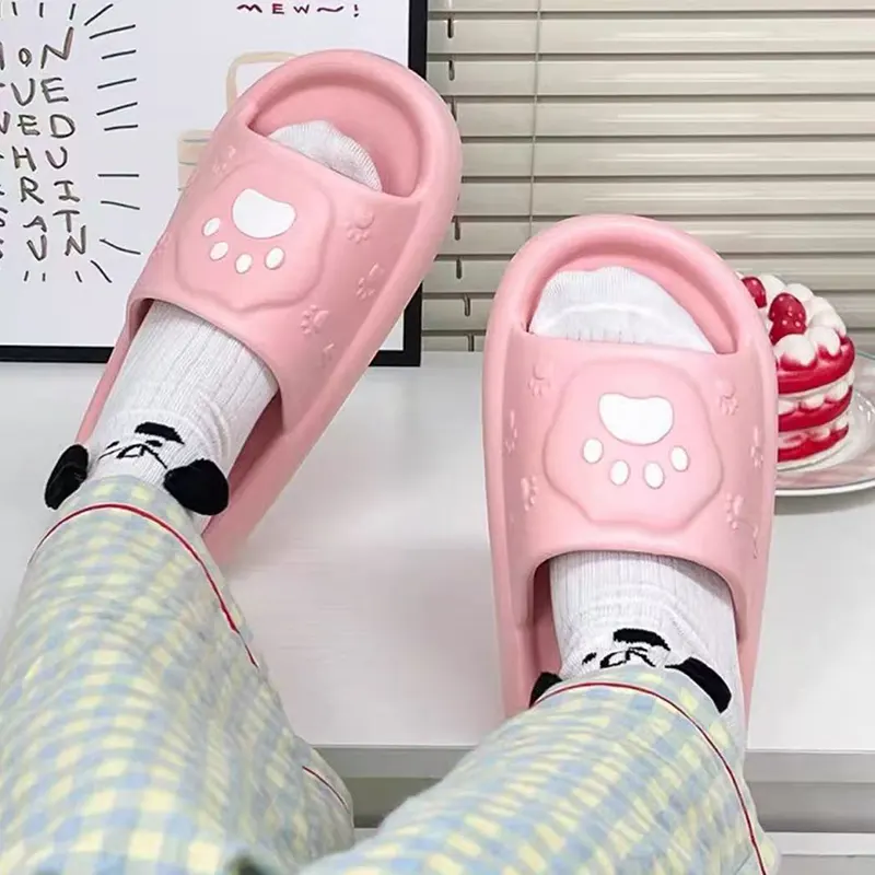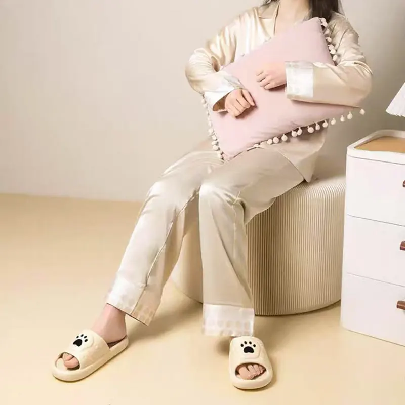 Tá ár slipéir lorg gleoite inchothaithe gan stró, ag tabhairt rithim shuaimhneach chun beatha agus ag baint le cuteness. Soláthraíonn an t -aon tiubh compord breise, rud a thugann mothú bog do do chosa. Ceadaíonn an t -aonán bog, lingy spaisteoireacht chompordach trí na scamaill, le mothú bog, preabadh.